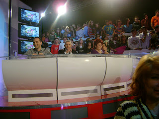 Nici nu stiu cu ce sa incep! Un week end de neuitat este putin spus. Sa incep prin a povestii cum am ajuns in platou. Prin iunie am intrat din greseala pe siteul Pe tocuri si am vazut un anunt cum ca lunea de la 11 dimineata intanlire pe chatul siteul cu Andreea Raicu. Si am intrat sa vedem daca este adevarat. Ei bine era adevarat. Dupa cateva luni bune de vorbit pe chat, ne am imprietenit nu numai cu Andreea ci si cu fetele din comunitate care sunt fooooarte de treaba si ma bucur ca le am cunoscut dar mai multe povestesc maine. Asa ca am propus sa ne intanlim, a acceptat si iata ca ne am intanlit. Andreea a acceptat cu usurinta pentru ca vroia sa ne cunoasca. Dupa cum zice chiar ea pe blog ei. Acuma noi am zis daca tot ne intanlim ce ar fi daca ne rezerva niste locuri la Megastar. Zis si facut. Asa, am ajuns in platoul Megastar. Era prima data cand mergeam intr o emisiune in direct. M am intanlit cu fetele de pe chat acolo si am intrat primele in platou. Am stat in al doilea rand chiar in fata juriului. Acum urmeaza niste poze, nu toate au iesit bine pentru ca nu puteam sa le fac cu blitz, dar le am ales pe cele mai bune: