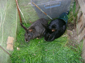Am primit 2 iepuri. Iepuroaica este gestanta. Nu stiu cand va naste. Uite-i ce draguti sunt...mi-e asa drag de ei!!! Le-am facut deocamdata o mica "gradinita" numai pentru ei.